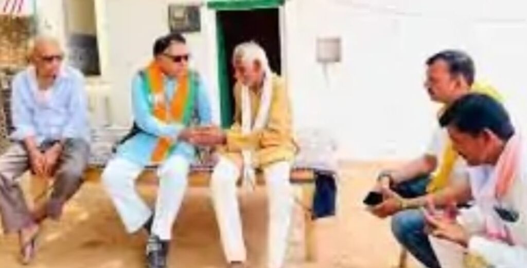 घायल आर्मी जवान रविन्द्र वीडियो कॉल पर बात करते।हुए, दूसरे चित्र के परिजनों से मिलते करेरा विधायक